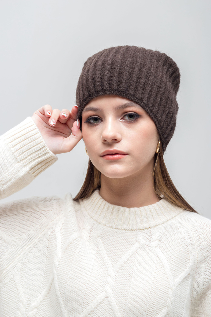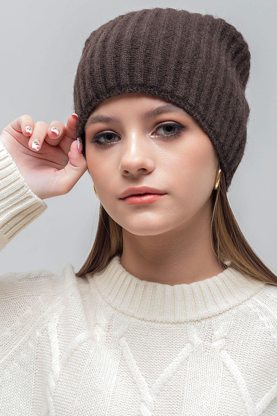 Купить шапка-бини из пуха яка munkh. Цвет: Бледно-мятный, Меланж, Светло-серый, Шоколадный, Коричневый