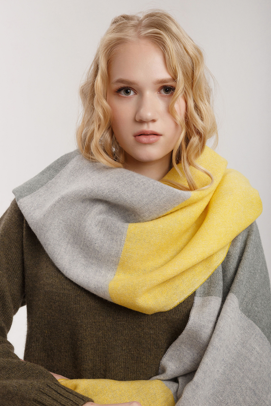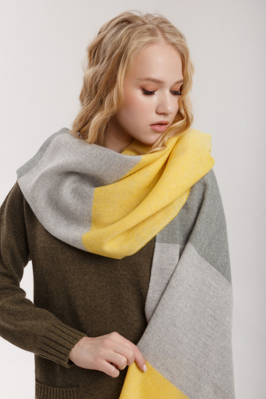 Удобно носить не только обернутым вокруг шеи, но и накидывать на плечи в образах с пальто