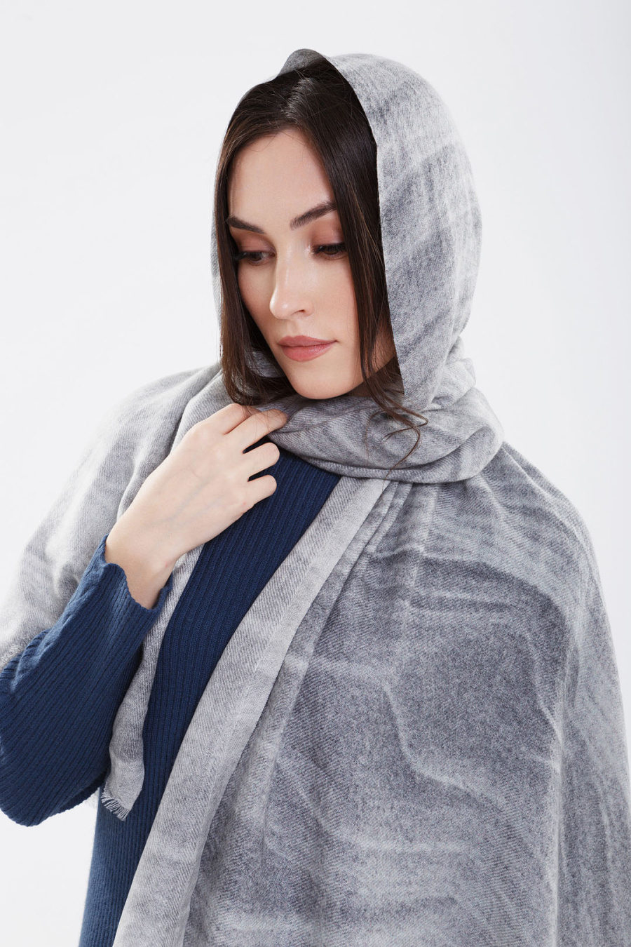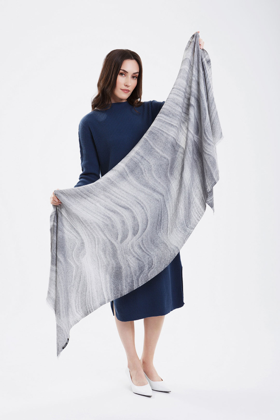 Купить шаль из 100% кашемира с принтом gobi. Цвет: Принт, 755/А055 бел*сер