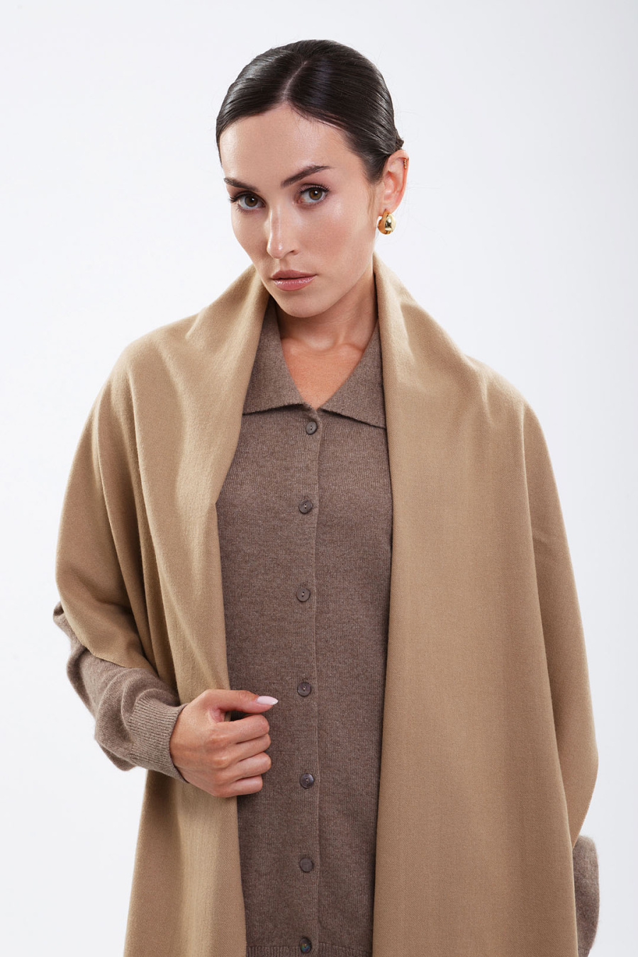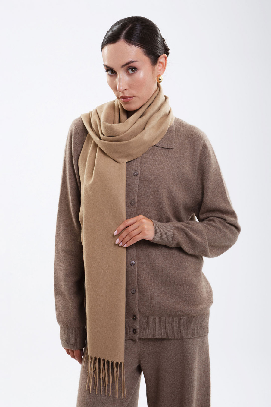 Изысканно драпируйте как палантин для особого выхода или оберните как шарф — он подарит вам тепло, не утяжеляя силуэт. Сдержанная элегантность однотонного решения и аккуратные кисточки подчеркнут ваше чувство стиля.