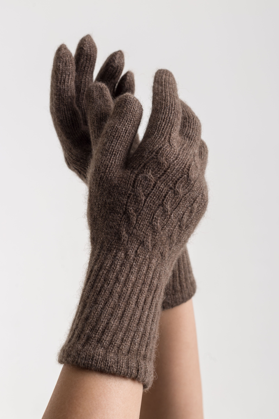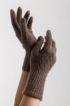 Купить перчатки из пуха яка с косами munkh. Цвет: Светло-серый, Коричневый