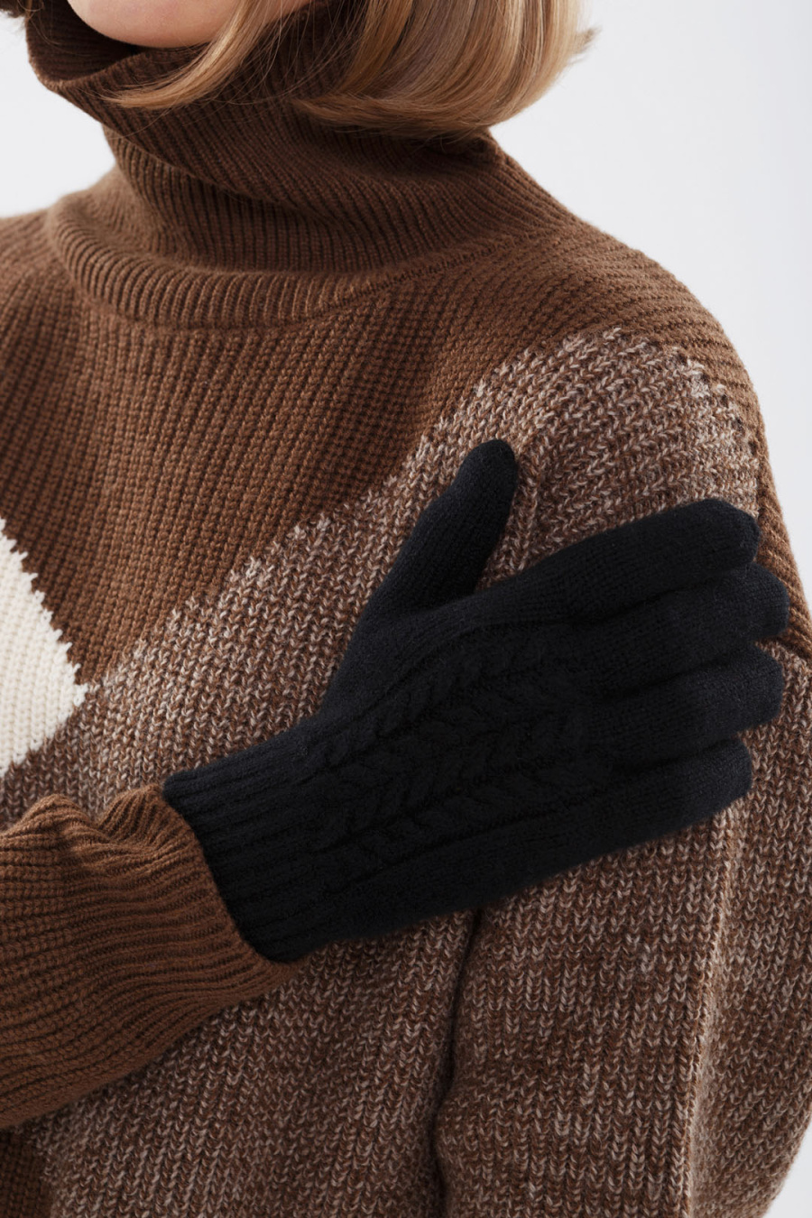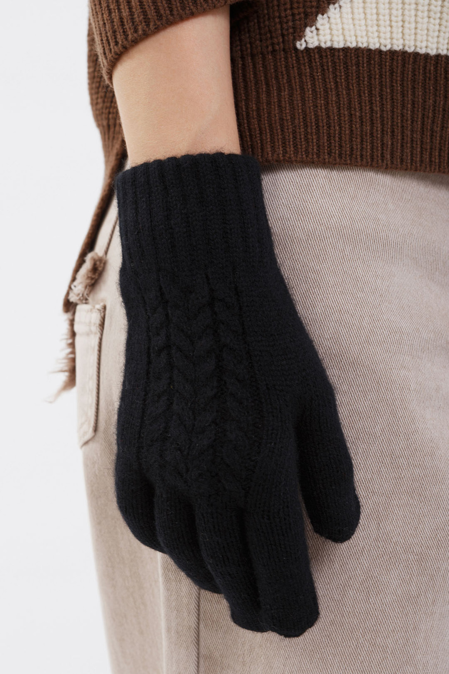 Купить перчатки с узором из 100% кашемира munkh. Цвет: Бежево-коричневый, Бордовый , Лунный камень, Бежевый , Коричневый, Чёрный, Белый