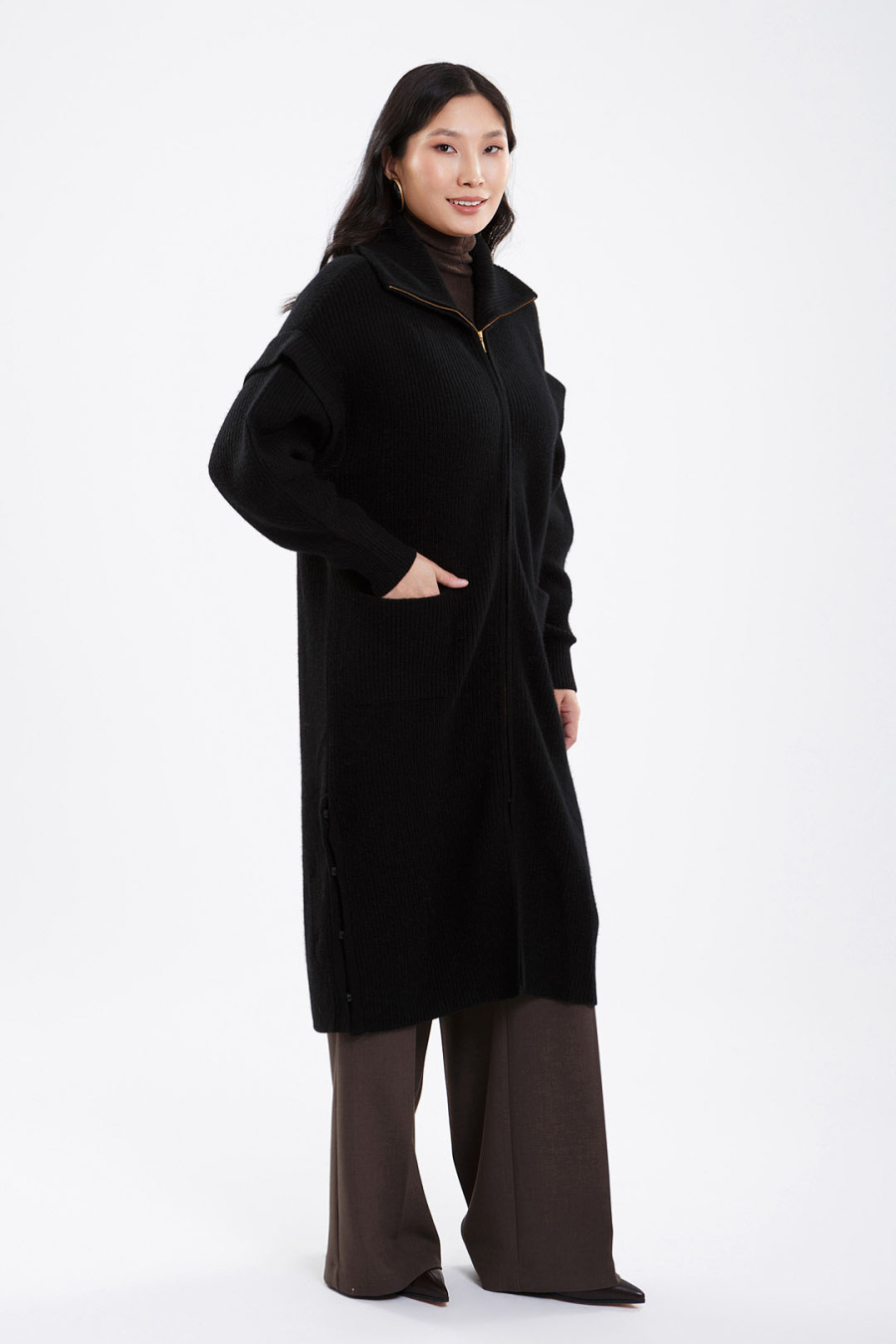 Купить кардиган-пальто из 100% кашемира khan bogd. Цвет: Чёрный