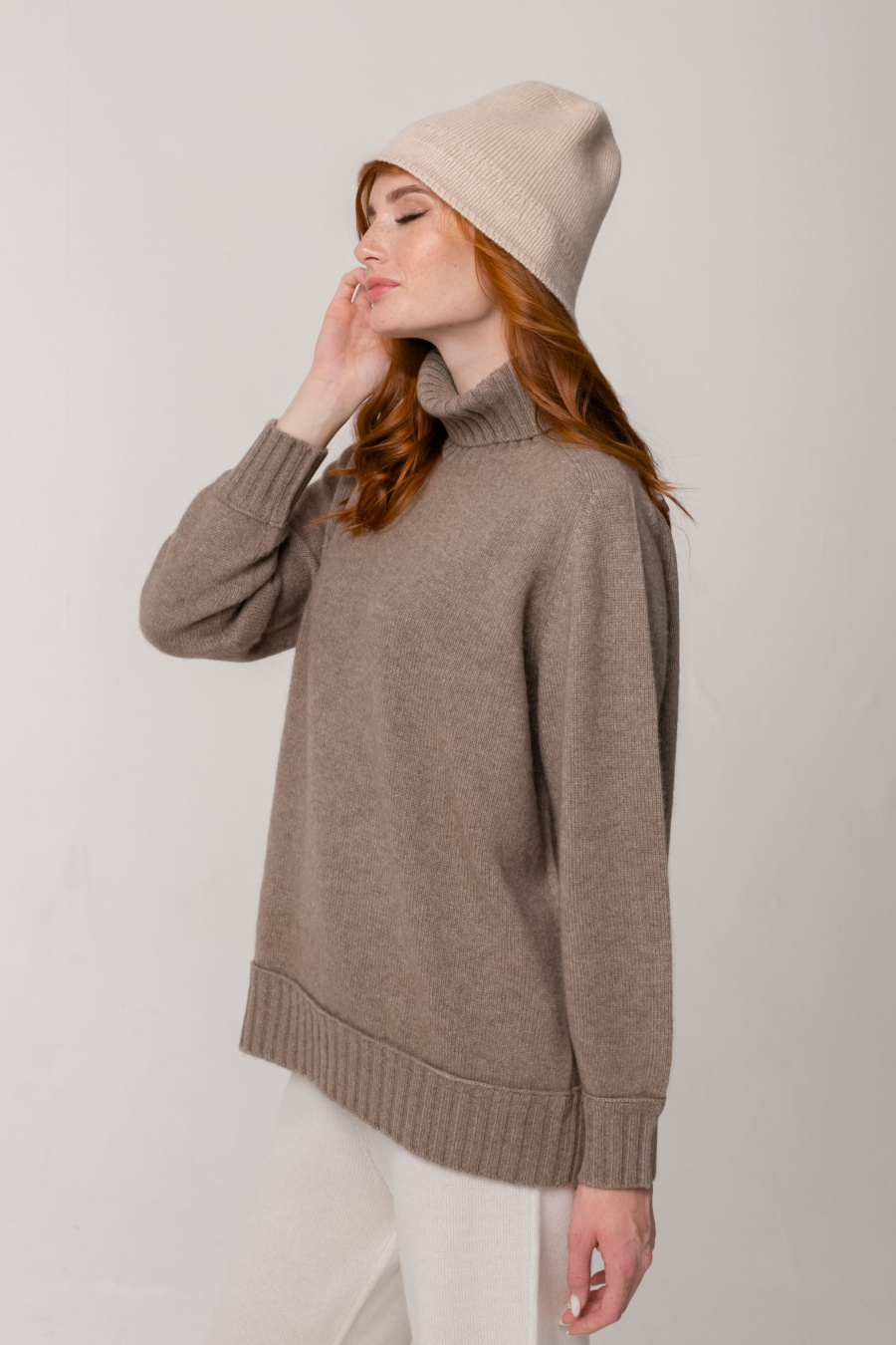 Притачные манжеты на рукавах и по низу изделия обеспечивают идеальную посадку и сохраняют форму свитера даже после длительной носки.