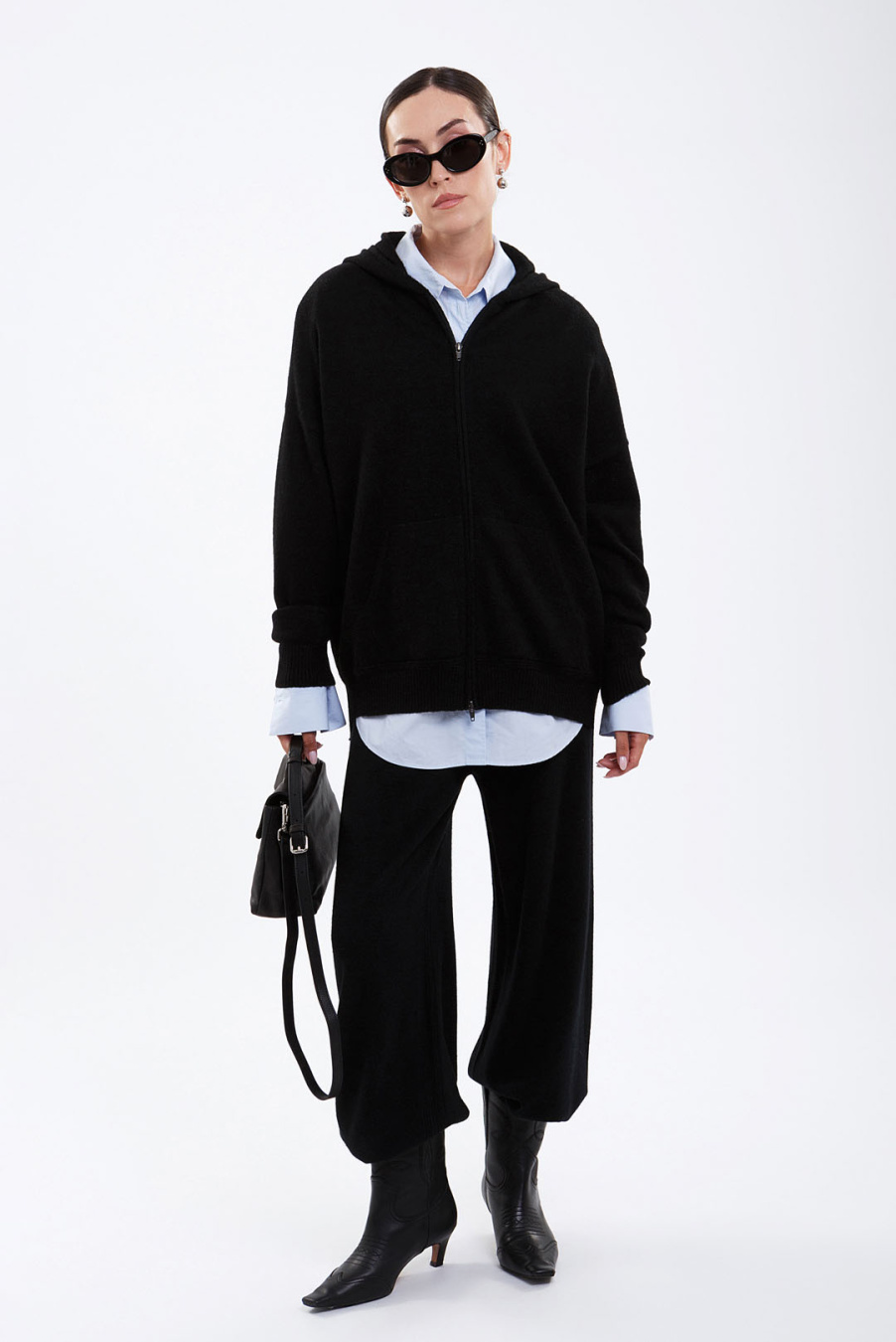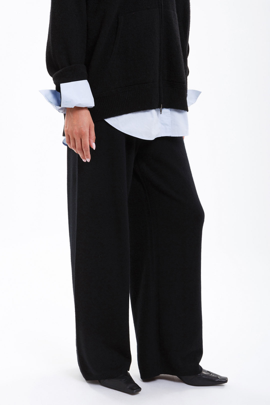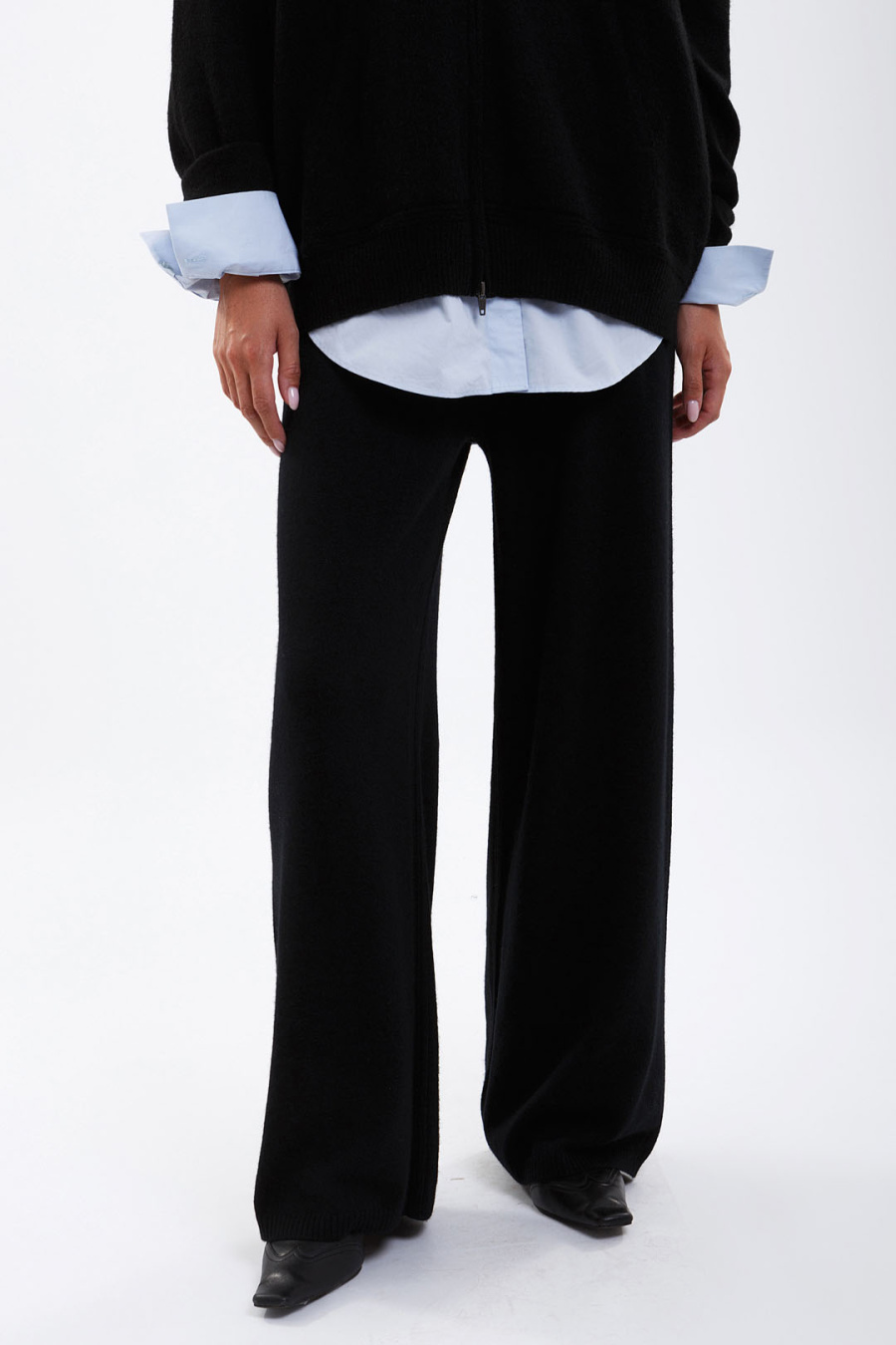 Прямой крой с шириной низа 27 см создаёт строгий, но элегантный силуэт, который идеально драпируется благодаря мягкости кашемира. Брюки подчёркивают достоинства фигуры и сохраняют безупречные линии.
