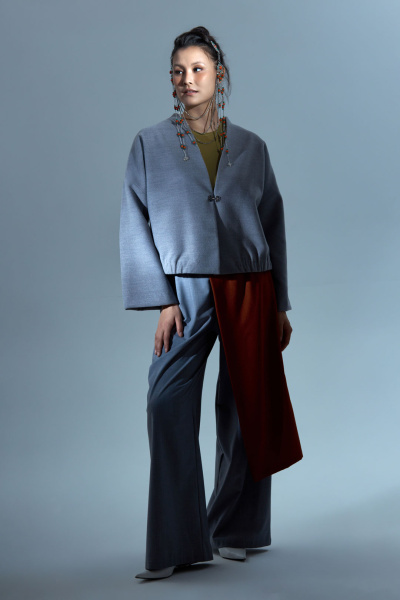 Пояс «Харгы» выполнен асимметричным — он мягко перекрывает левую сторону, словно дорога, которая огибает препятствия, но никогда не останавливается. В этом крое зашит древний смысл: путь всегда продолжается, даже когда сворачивает. Пояс символизирует свободу движения, готовность идти вперёд, не оглядываясь.