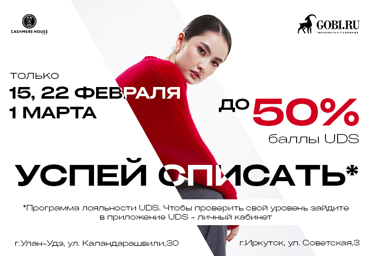 можно списывать баллы до 50% от полной стоимости изделий из кашемира и шерсти!